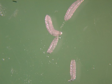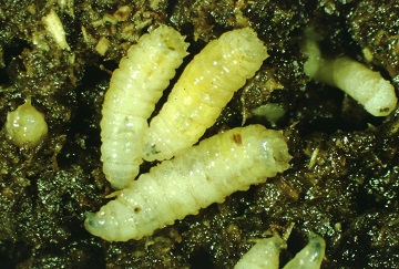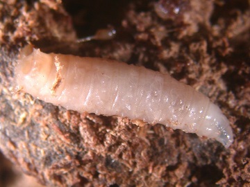 蠅類幼蟲的頭部不發達,只有口鉤,身體成細長的圓錐狀(蛆形),尖的部位當然就是頭部,沒有足,被稱為蛆;幼蟲需經過2次蛻皮到3齡期。