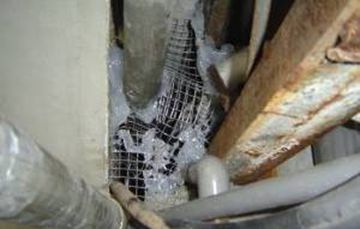三、封堵阻斷-利用如金屬網、發泡劑、矽力康黏著劑、鋁板等,針對各類孔洞予以封堵,亦可利用如防鼠刺刷綁在管線上來阻斷老鼠利用管線活動。但封堵受限於某些結構裝潢因素可歸納為三個條件,首要能目視的到封堵位置,次為手部得以觸及封堵位置,最後需要有一個平穩安全的工作平台才能施作。